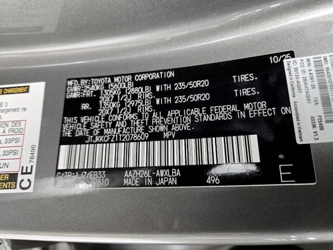 - VIN : JTJKKCFZ1T2078609